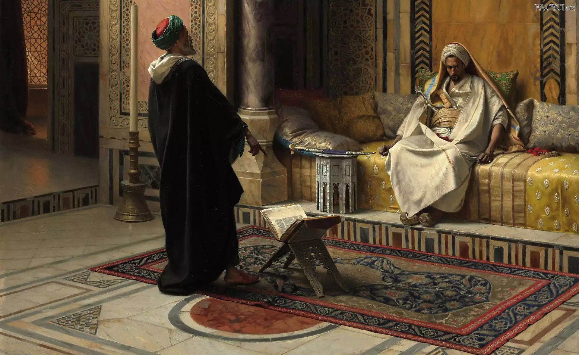 Sofa, Ludwig Deutsch, Otomana, Mężczyźni, Obraz, Malarstwo, Księga, Komnata, Dywan - faceci.biz